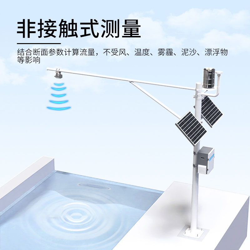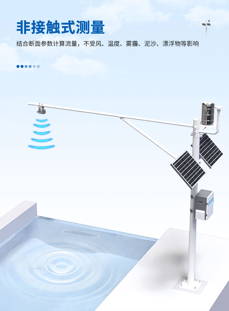 1、非接触式测量,结合断面参数计算流量,不受风、温度、雾霾、泥沙、漂浮物等影响。