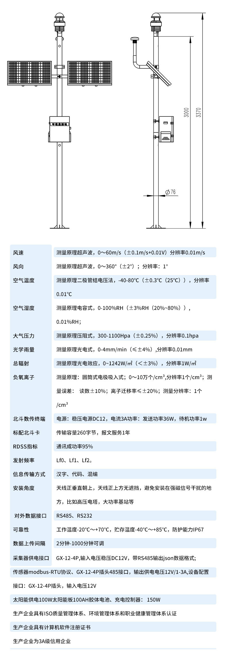 三、北斗生态环境监测站技术参数