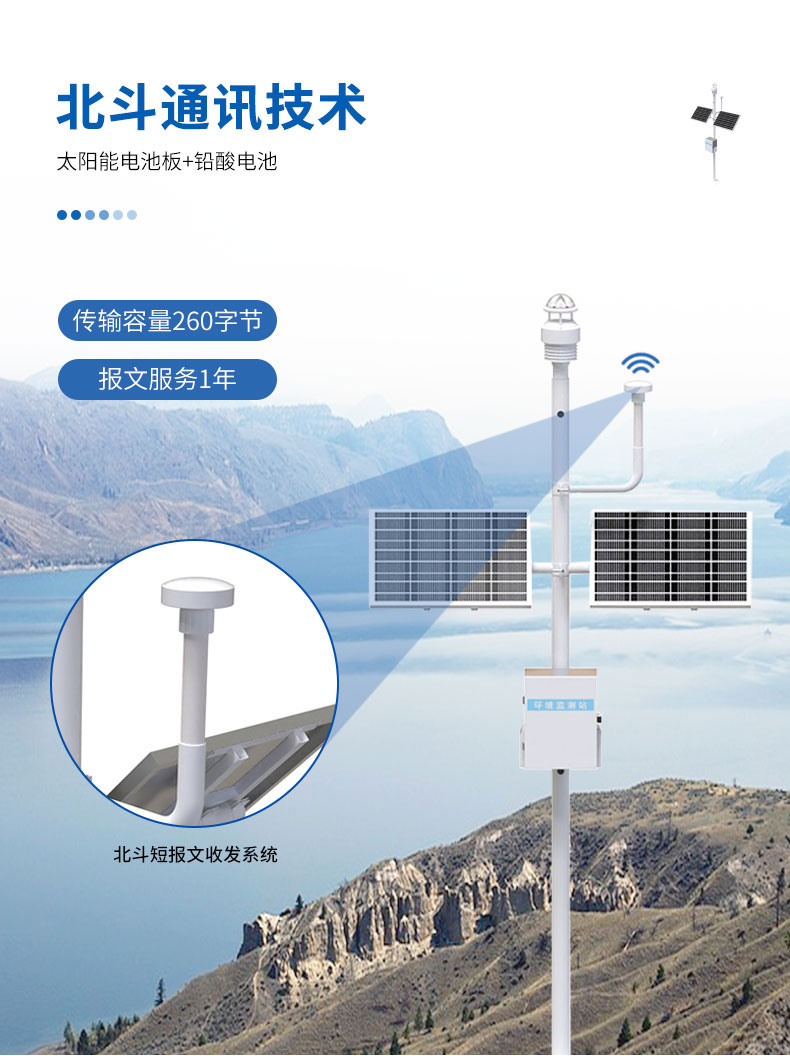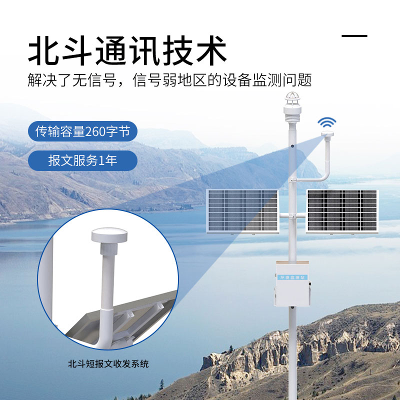 北斗生态环境监测站FZ6是我司自主研发的利用北斗三号区域短报文通信技术和气象环境监测技术结合而成的一种自动化气象监测设备。该系统设备具有自主运行实时传输、智能监测、精准预报等特点,能够对气象环境变化进行24小时不间断的监测,极大的解决了无信号、弱信号地区的环境监测问题。目前北斗自动气象站已经广泛应用于中国各地,为天气预报和环境预警保障提供了重要支撑。