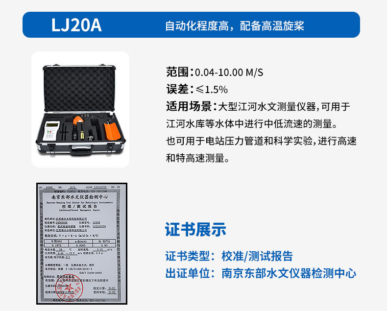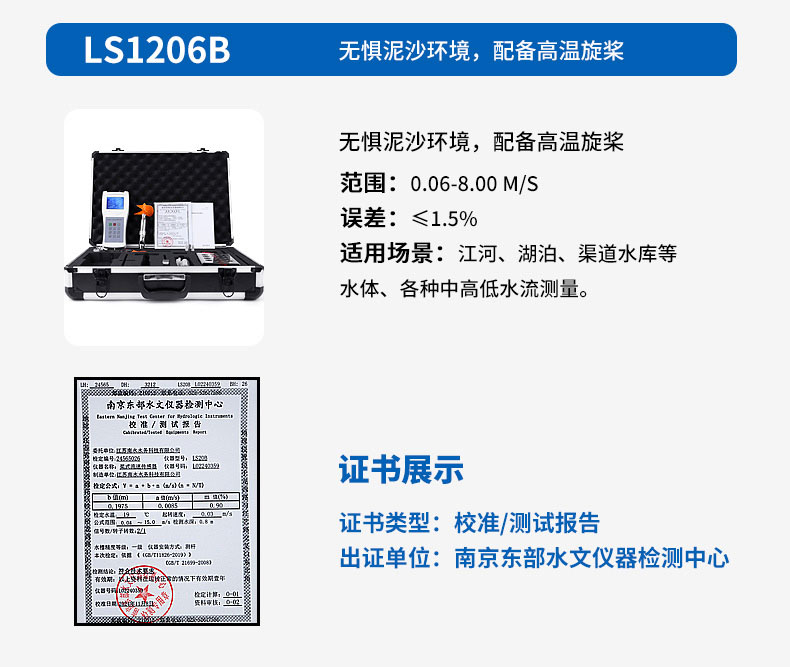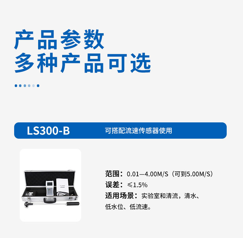 该仪器结构简易、轻巧方便、耗电省、功能齐全、自动化程度高、稳定可靠,符合国家明渠流量测量标准,配置60度高温旋桨,是国内目前新型的便携式流速测量仪器。