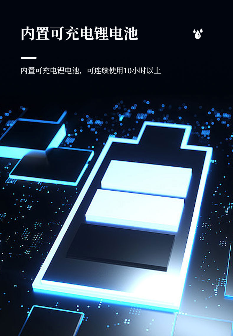 6.内置可充电锂电池,可连续使用10小时以上;