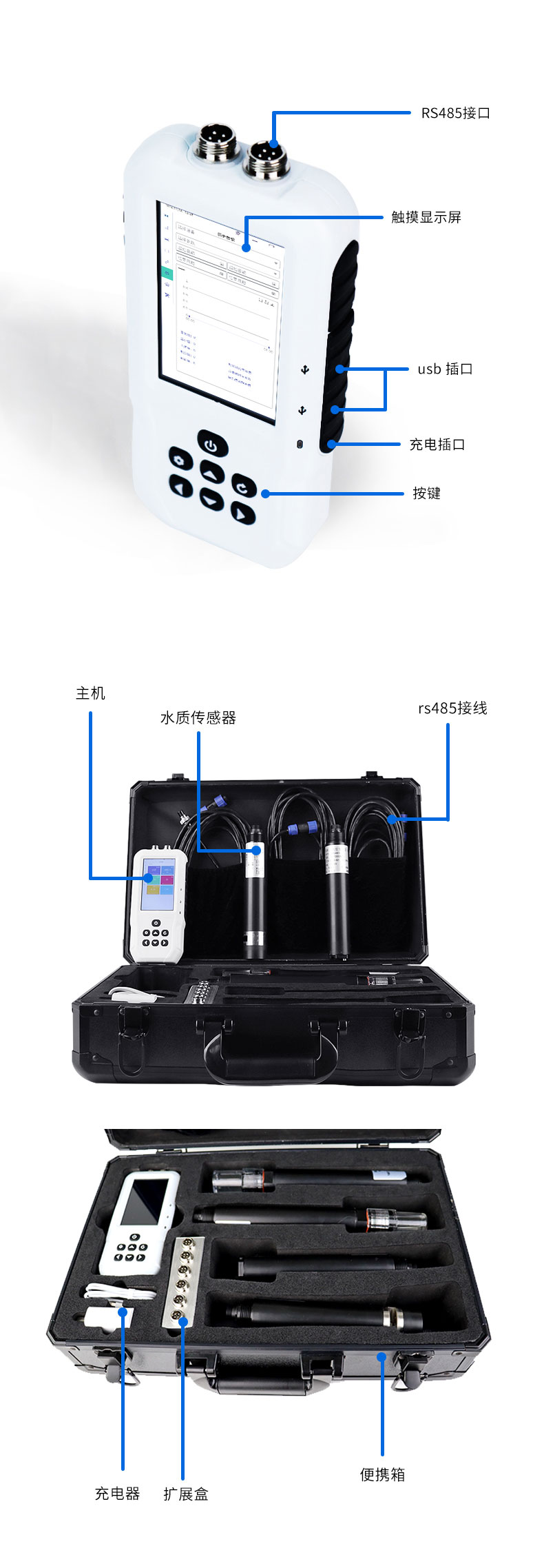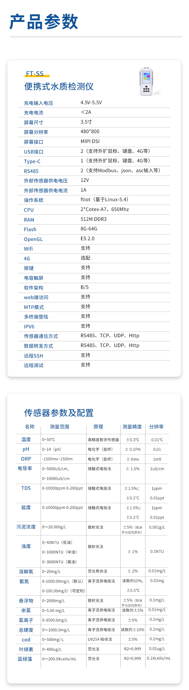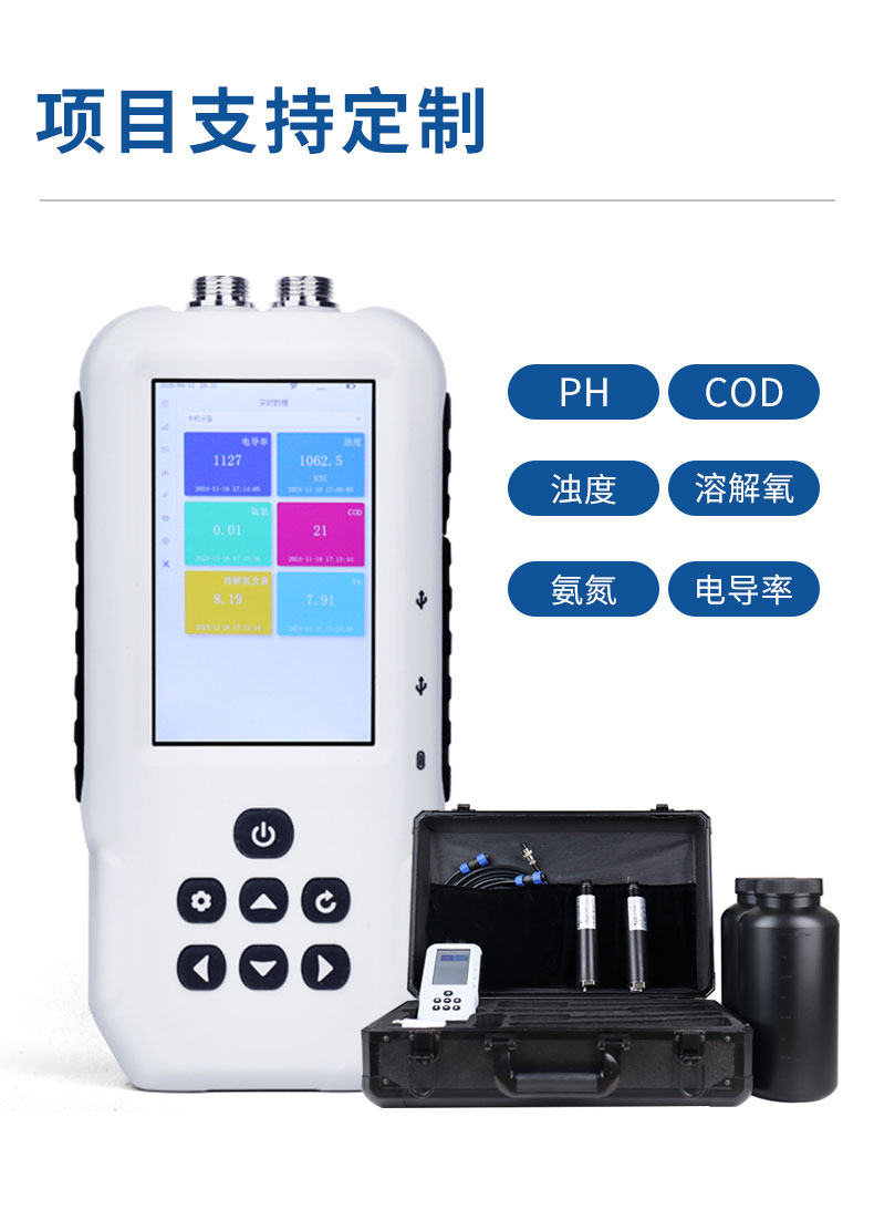 【产品简介】一、污水水质检测仪产品简介SS07型号污水水质检测仪是一款电极法水质分析仪器,采用全数字电极检测,可检测水质水温、电导率、PH、氨氮、溶解氧、cod、浊度参数。仪器搭载自研ftio···