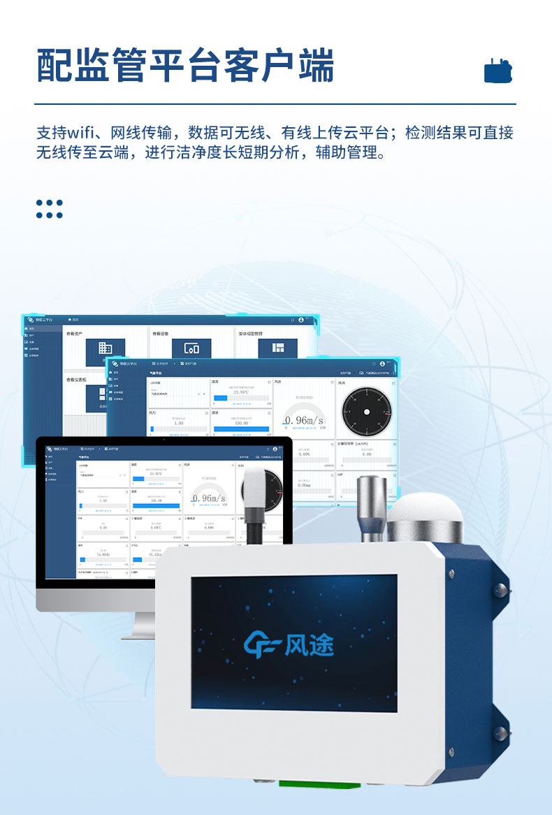 8、配监管平台客户端,检测结果可直接无线传至云端,进行洁净度长短期分析,辅助管理。