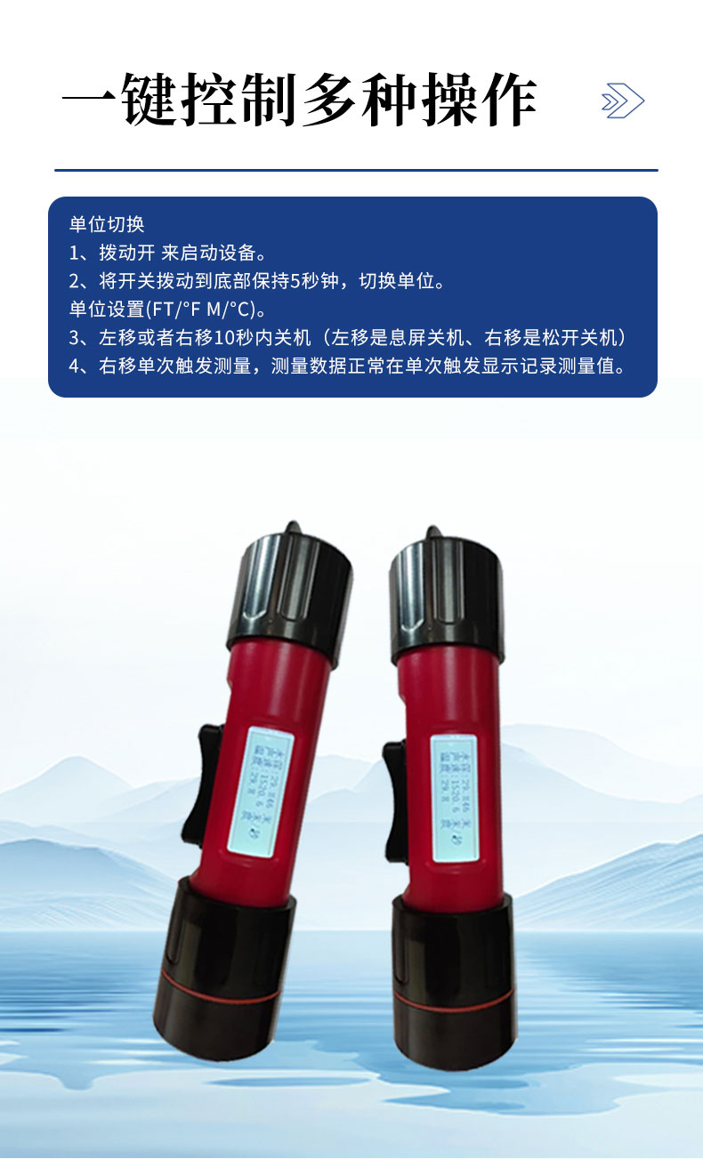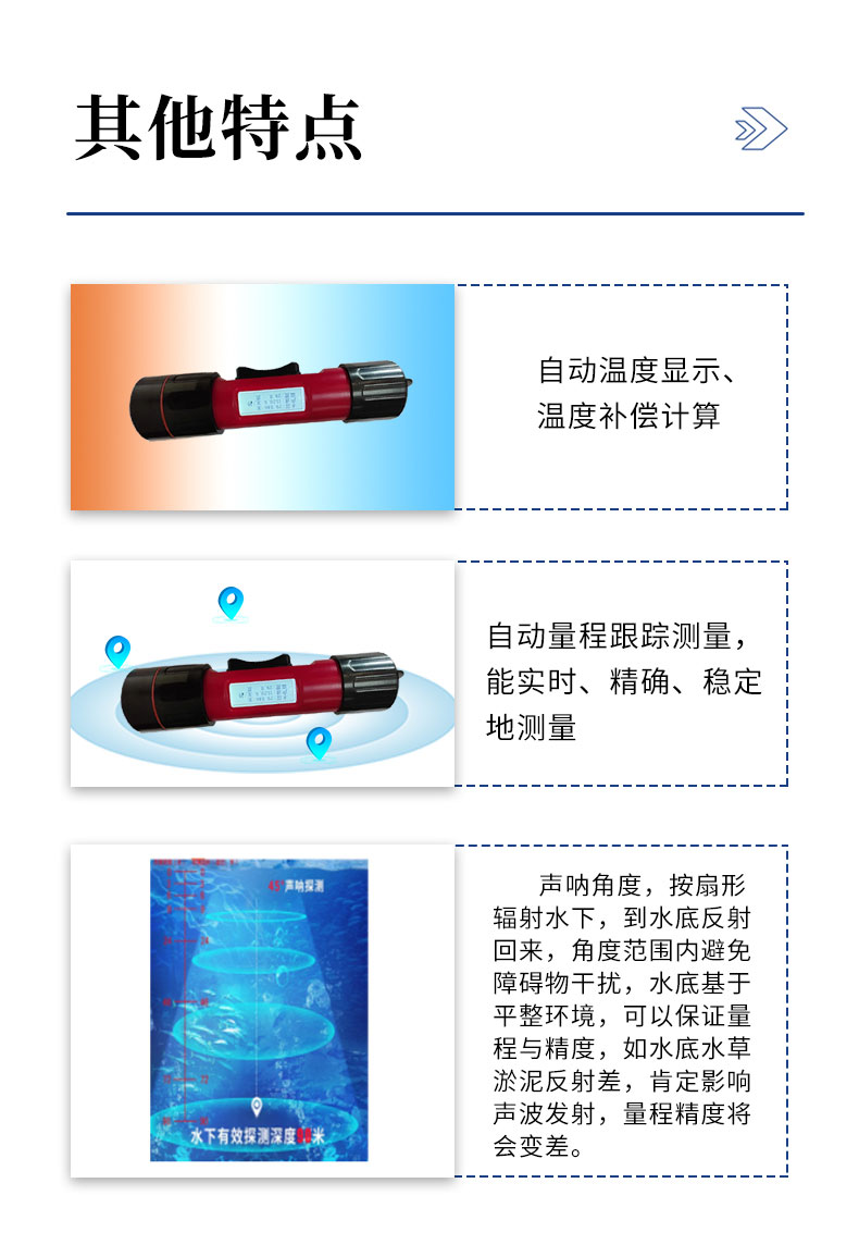 【产品简介】一、一体式水深水温仪工作原理声波在空气中速度为340米/秒,在水中为1500米/秒左右。声波在水下往返750米正好是1秒钟,测量声波的往返时间,可以计算水下目标深度。超声波是频率高···