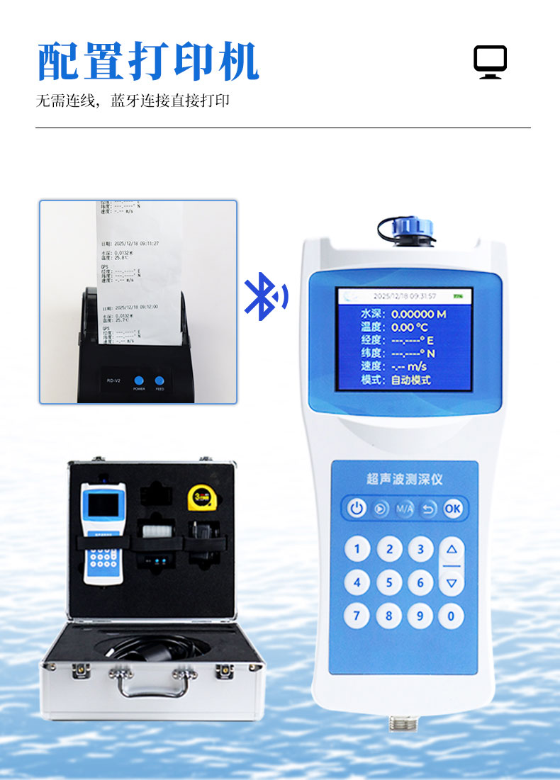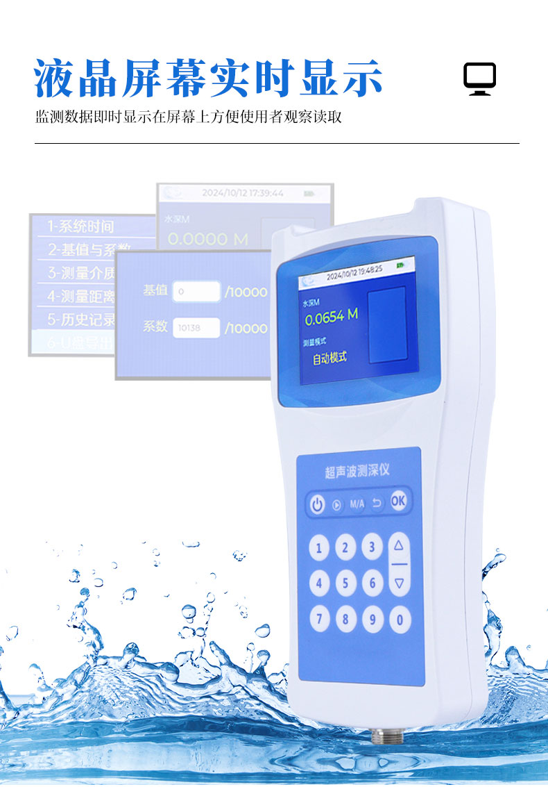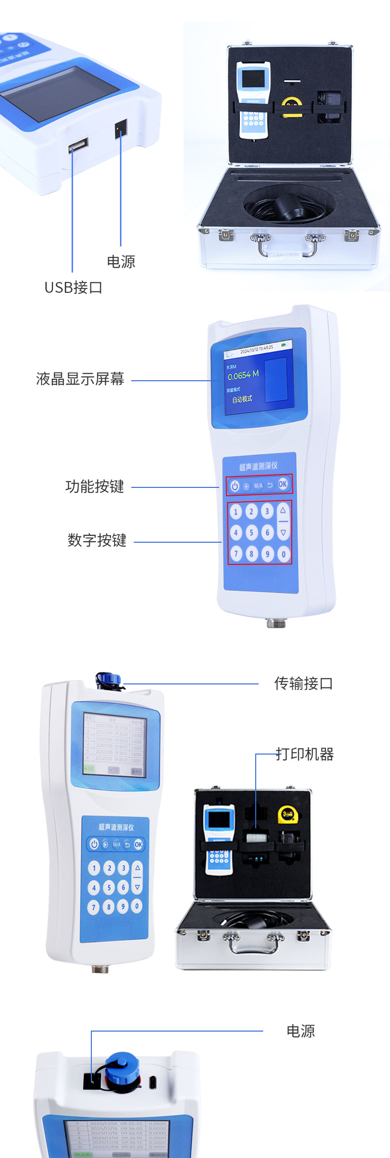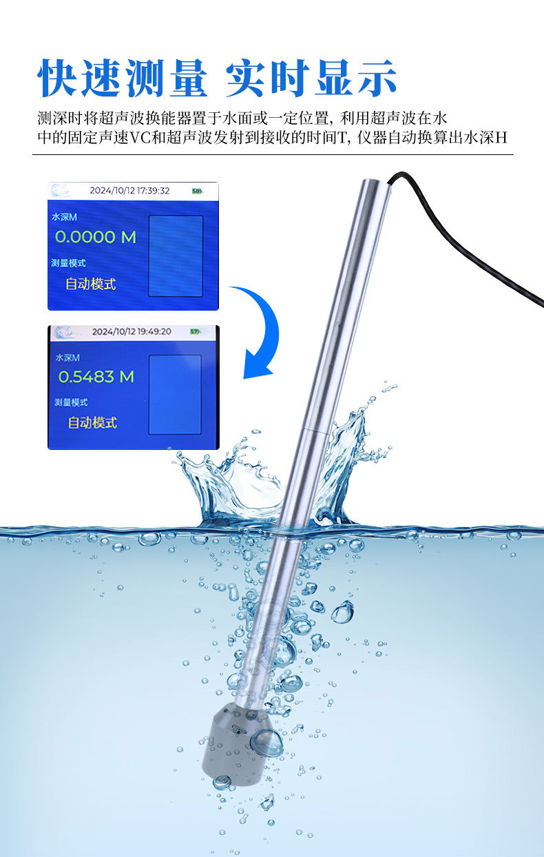 【产品简介】一、高精度多功能超声波测深仪产品简介高精度多功能超声波测深仪是测量水库、湖泊、江河、浅海等水体的便携式测深仪,测深时将超声波换能器置于水面下一定位置,利用超声波在水中的固定声速VC···