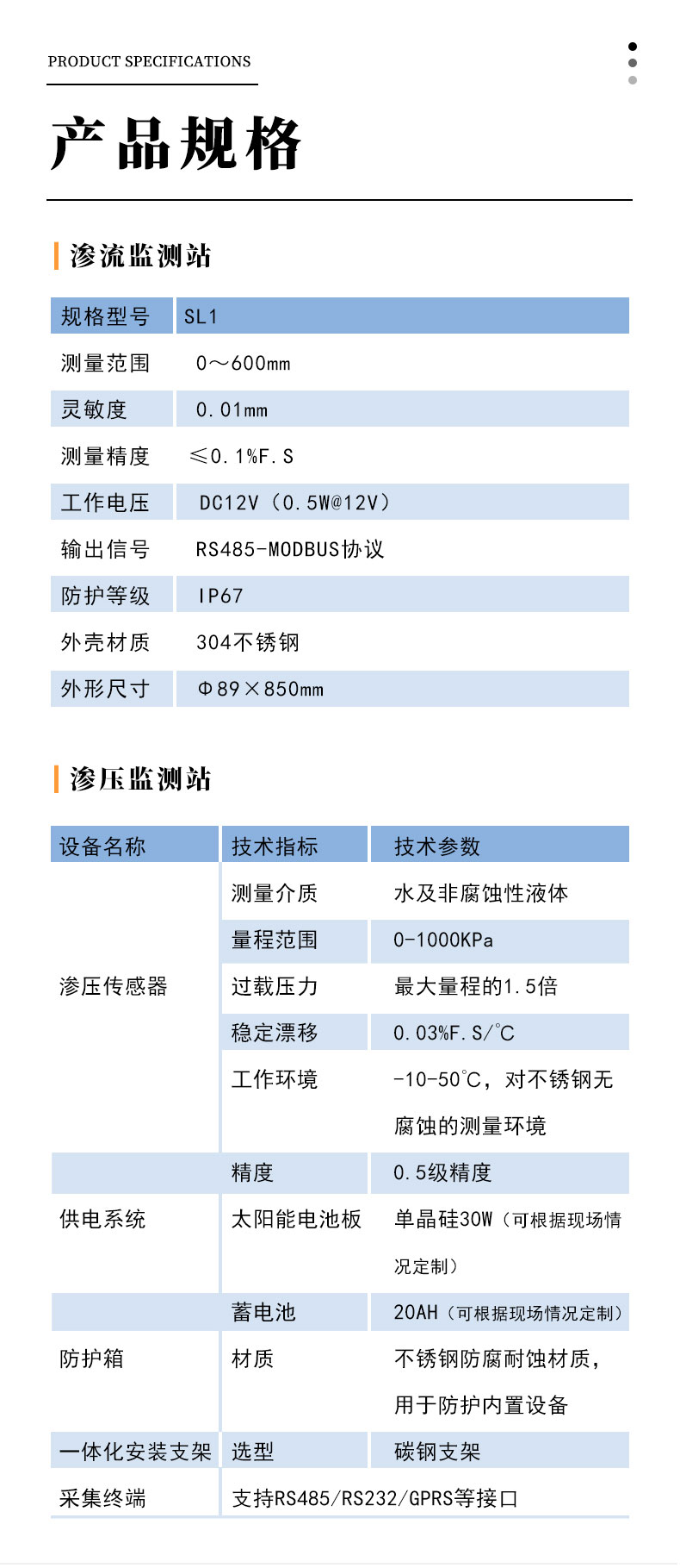 渗流监测站规格与参数