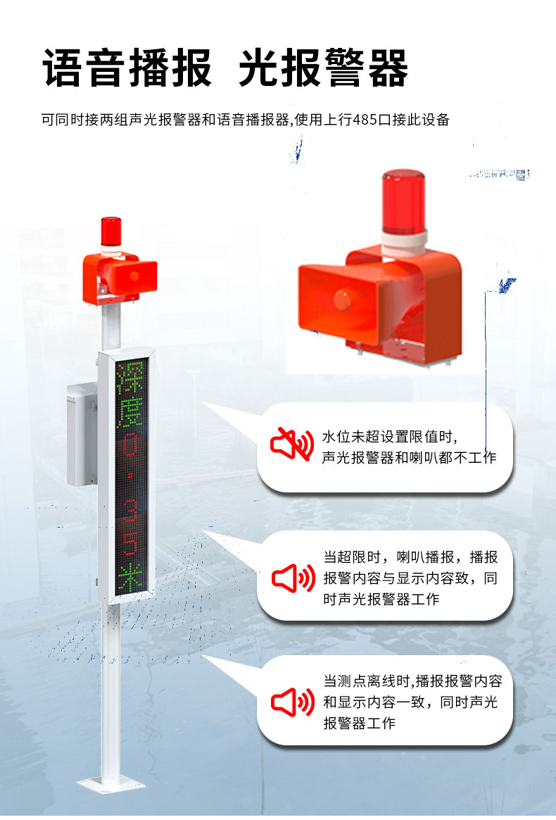 ②、水位未超设置限值时,声光语音报警模块不工作。