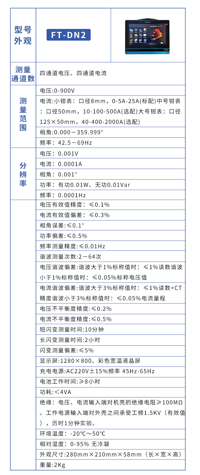 二、电能质量分析仪技术指标