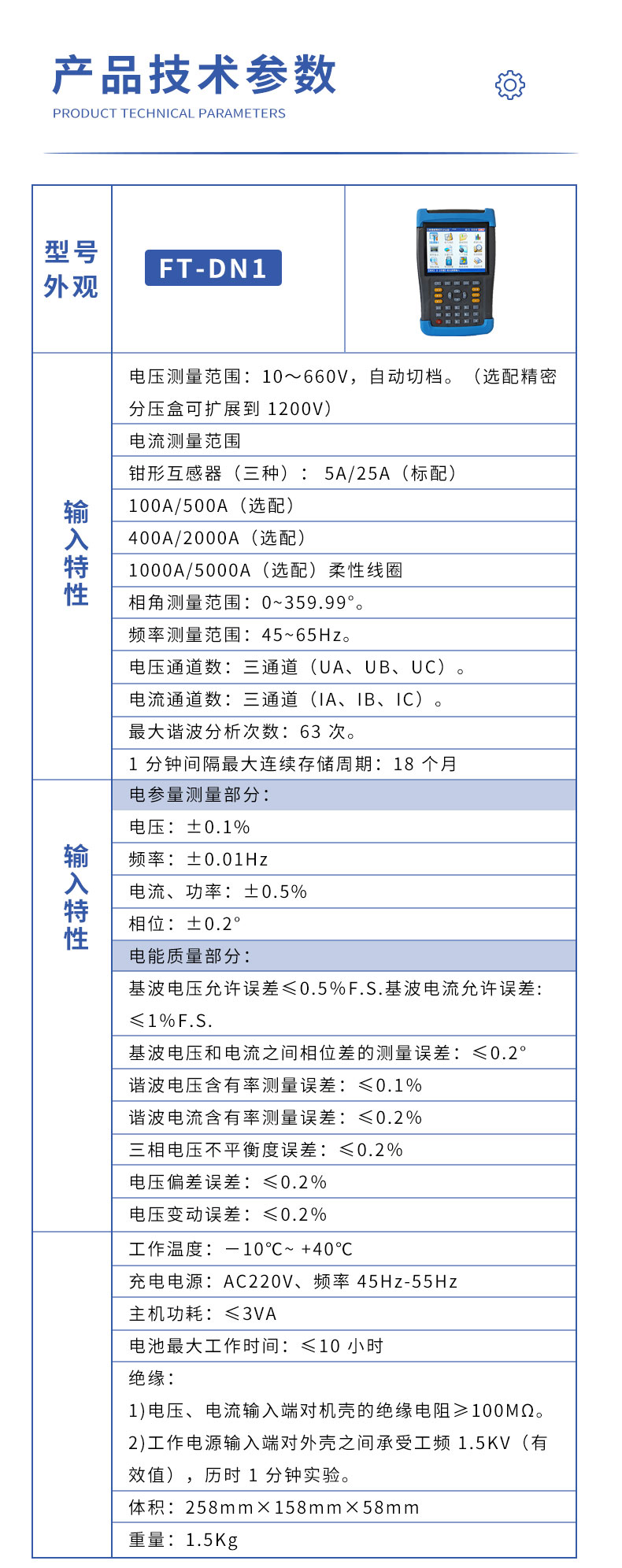 基波电压允许误差≤0.5%F.S.基波电流允许误差:≤1%F.S.