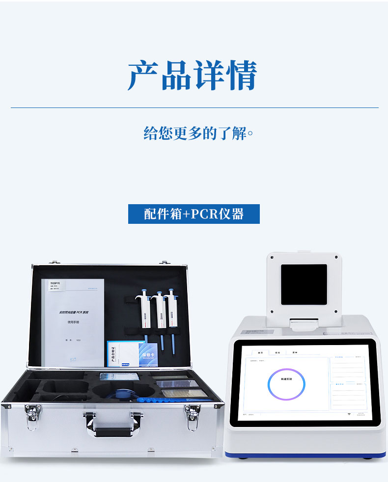 动物疫病检测仪由四通道16孔荧光定量pcr仪、便携式配件箱组成。