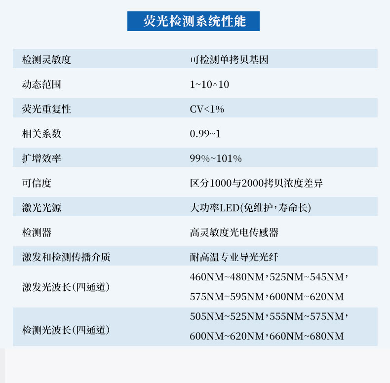 | 荧光重复性 | CV<1%(使用某品牌试剂做16孔均一性实验,16个孔的Ct差值保持在0.5以内,CV保持在1%以内。) |