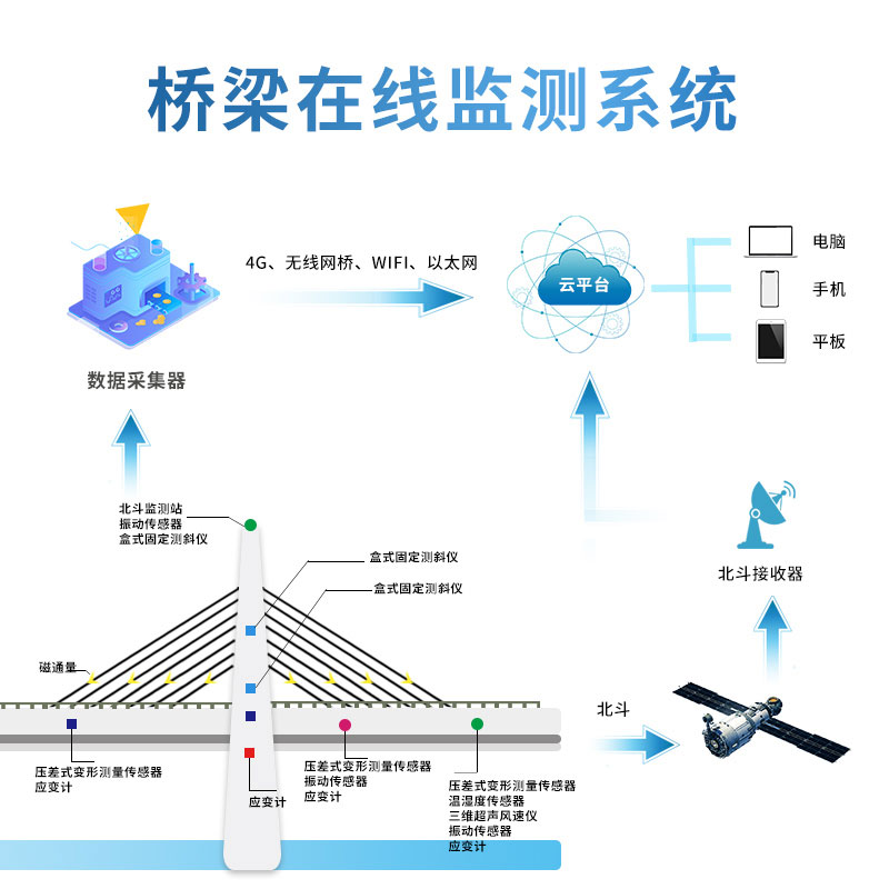 | 索力 | 磁通量传感器/加速度计/锚索计 | 温湿度 | 温湿度传感器 |