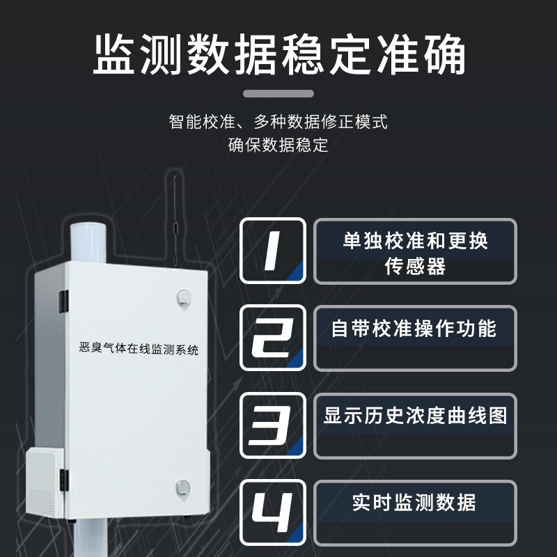 间歇性监测或连续24小时针对污染区域进行环境恶臭监测,标准监测指标可以同时实现GB14554标准中规定的污染物控制种类:臭气浓度OU值、氨气、硫化氢。