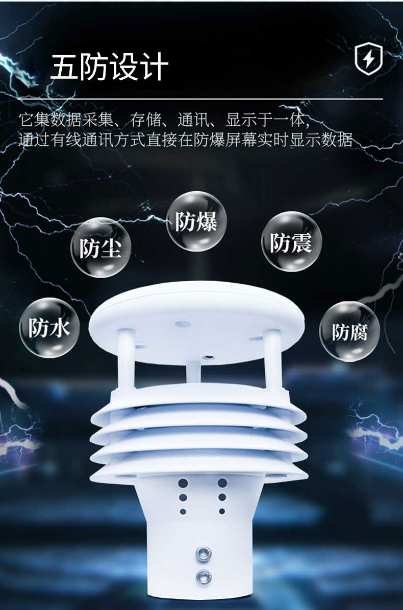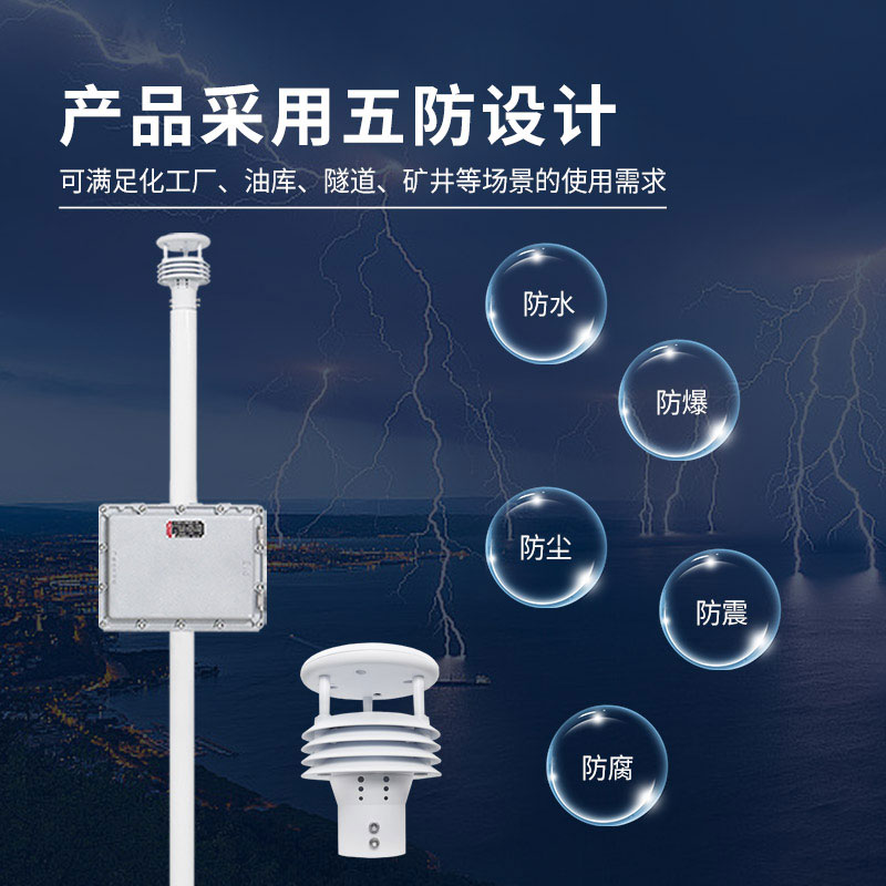 防爆气象站采用了防腐、防爆、防水、防震、防尘等高防护等级的设计理念,可满足化工厂、油库、隧道、矿井等场景的使用需求。
