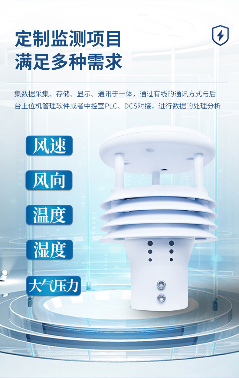 2.风向:测量原理超声波,0~360°(±2°);分辨率:1°;
