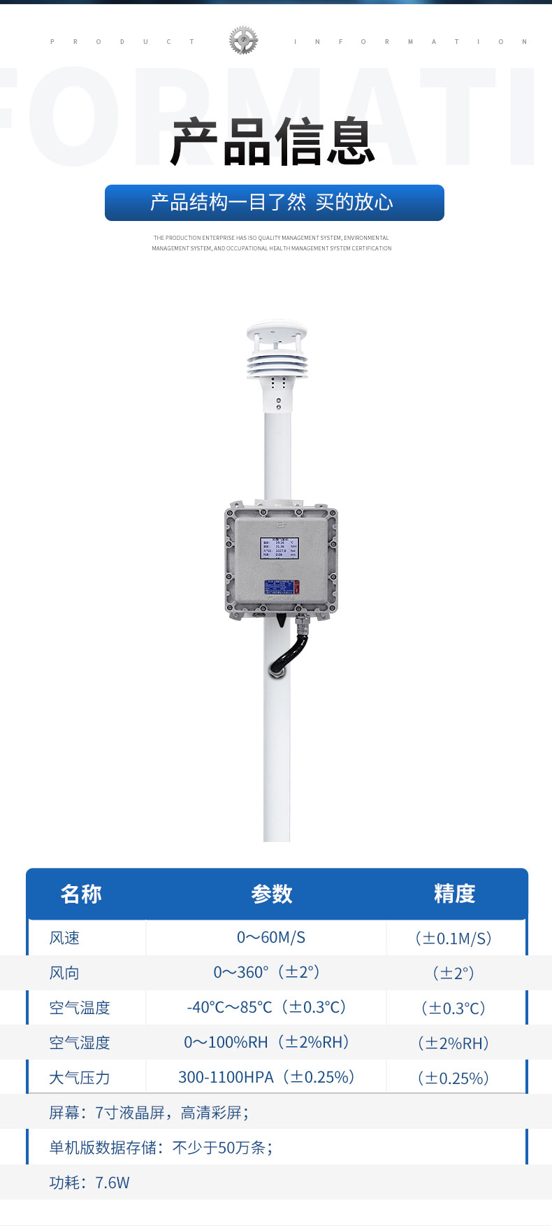 三、液晶屏防爆气象站技术参数