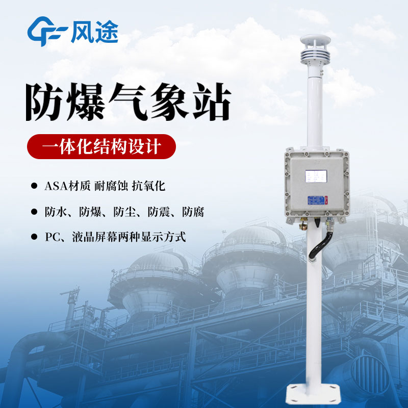FB01S型液晶屏防爆气象站是我司根据市场需求,针对化工厂、油库等特殊场所而研发生产的一款一体化气象站。它集数据采集、存储、显示、通讯于一体,通过有线的通讯方式与后台上位机管理软件或者中控室PLC、DCS对接,进行数据的处理分析。
