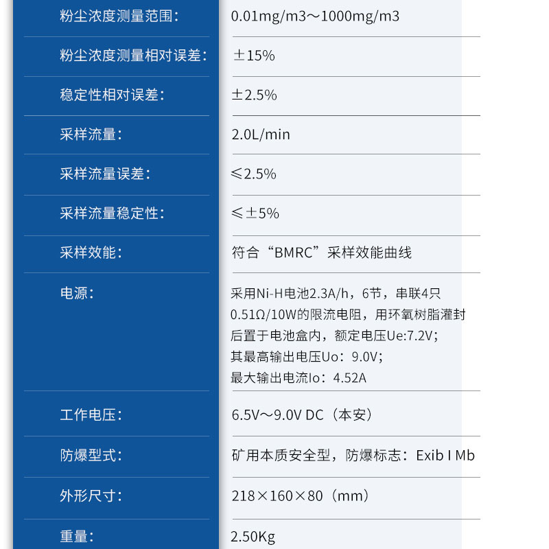 二、防爆粉尘检测仪技术指标