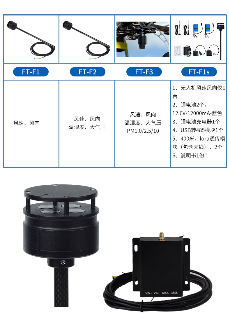 【产品简介】一、八参数无人机气象仪产品简介F3八参数无人机气象仪可测的气象参数包括:风速、风向、温度、湿度、气压、PM1.0、PM2.5、PM10等。采用一体化结构,为搭载在无人机平台上而设计···