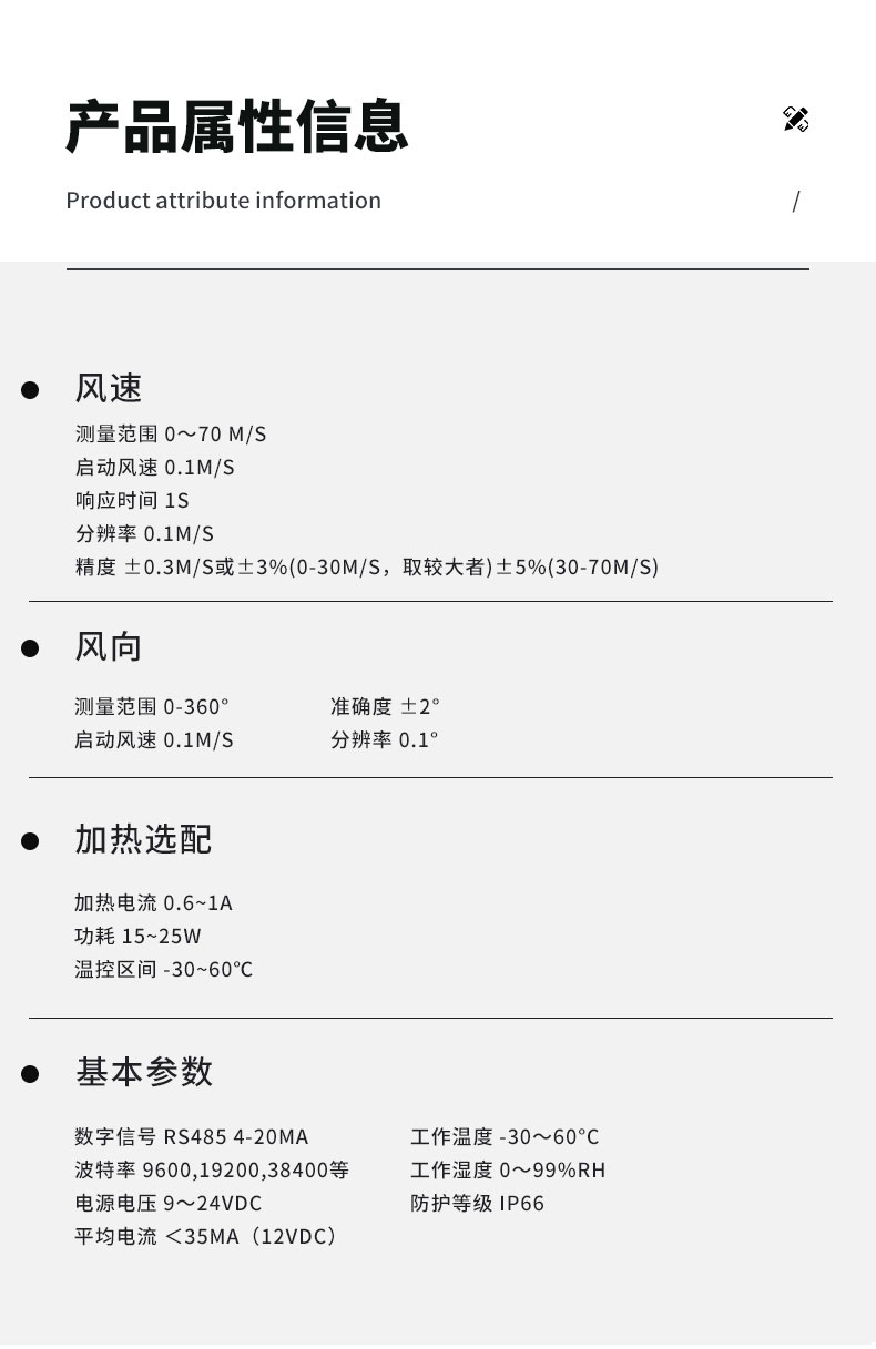 | 精度 | ±0.3m/s或±3%(0-30m/s,取较大者)±5%(30-70m/s) | |