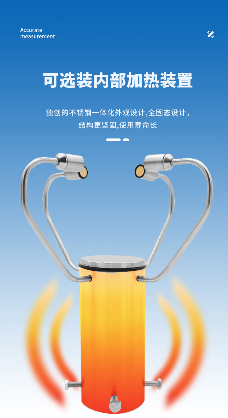 1.不锈钢一体化外观设计,外观精美,采用自主研发的传感技术实时测量,无启动风速限制,无角度限制,同时获取风速、风向的数据。