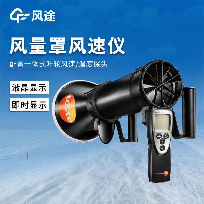 风量罩风速仪配置一体式叶轮风速/温度探头,直径100mm,测量风速、风量和温度。直接显示体积流量。只需输入管道的截面积,即可精确计算出流量。可以快速切换至当前的温度读数。此外,还可以显示气流的方向。仪器带时间段和多点平均值计算功能,计算风量、风速和温度的平均值。用户可选配风量罩,有助于更好地检测格栅出风口和风阀处的风量。仪器可以显示最大值/最小值。使用保持键,可以保持当前读数。