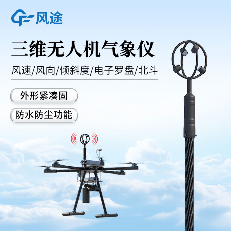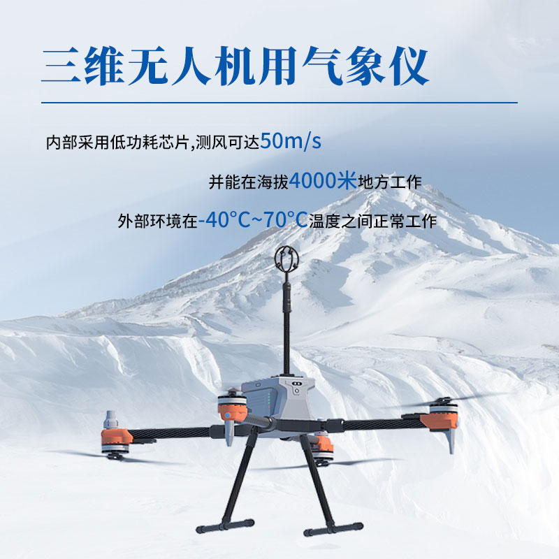 三维无人机风速风向仪可以提供空气流动精确的三维风测量数据。数据输出可以根据用户需求定制。