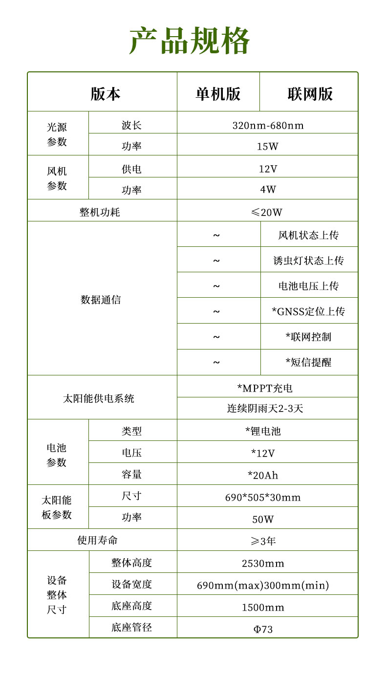五、太阳能杀虫灯技术参数