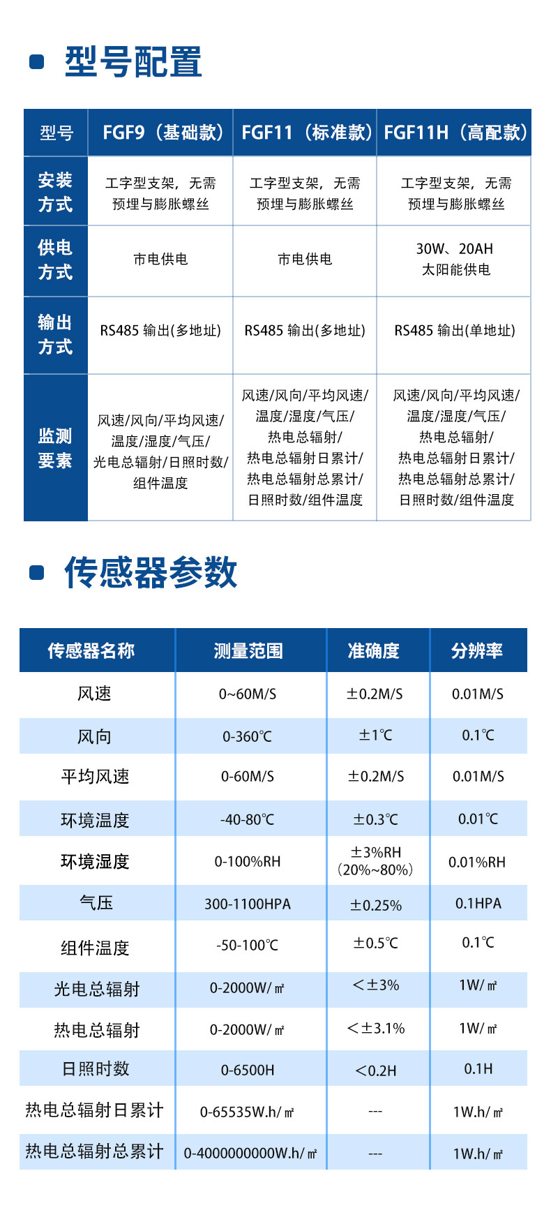 七、分布式光伏气象站基础款传感器参数