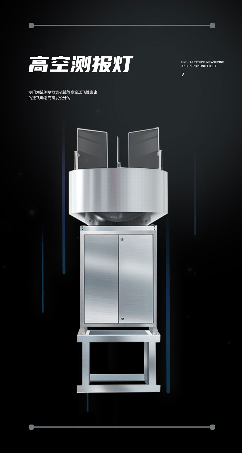 【产品简介】名称: 高空测报灯主要目的:高空测报灯是专门为监测草地贪夜蛾等高空迁飞性害虫的迁飞动态而研发设计的,能够有效测报迁飞性害虫的种群动态,同时具有较强的诱捕作用。对虫害的发生与发展进行···