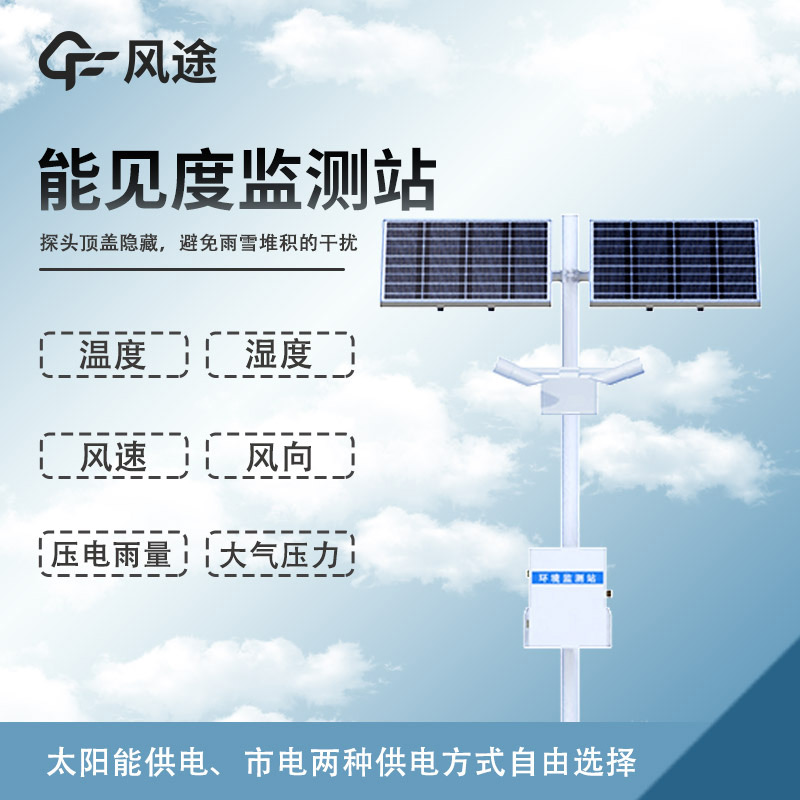 50KM能见度监测站系统组成:能见度传感器、采集器、立杆支架、供电系统、云平台