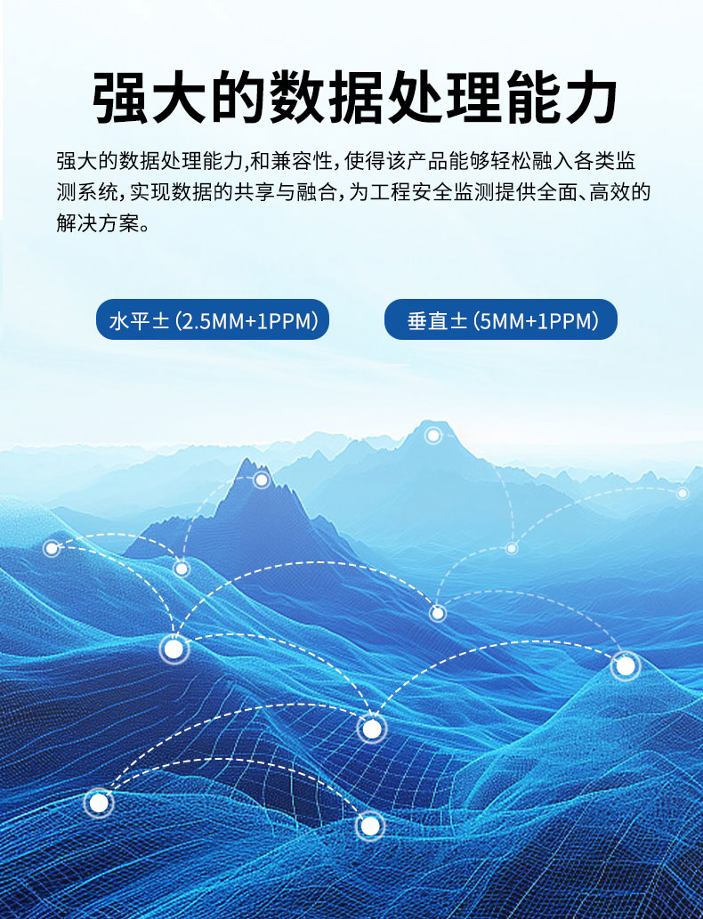 3.静态精度(差分模式):水平±(2.5mm+1ppm),垂直±(5mm+1ppm)