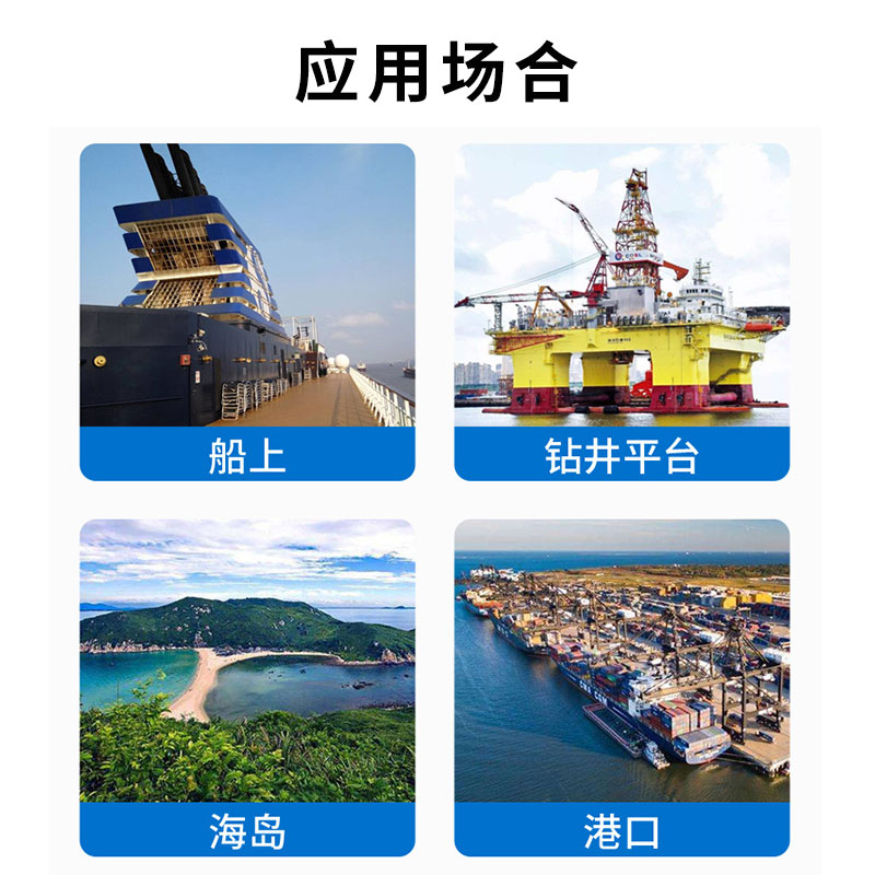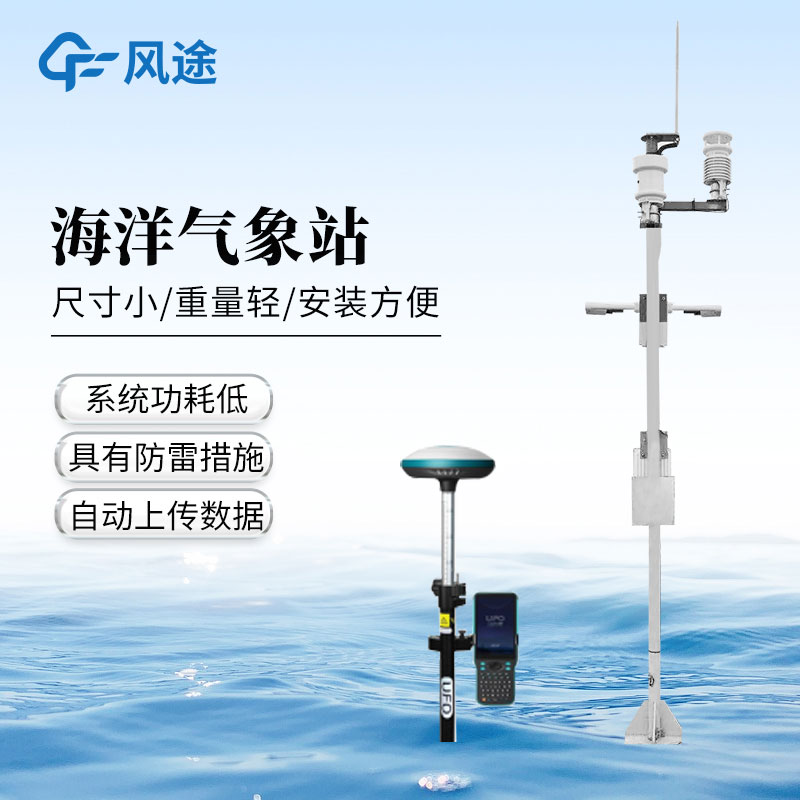 海洋气象站采用的气象传感器包括:能见度天气现象检测仪、风湿温压雨光照一体化微型气象站、北斗高精度定位仪等,还包括专用综合气象数据采集器、支撑结构、供电通信控制箱等单元。
