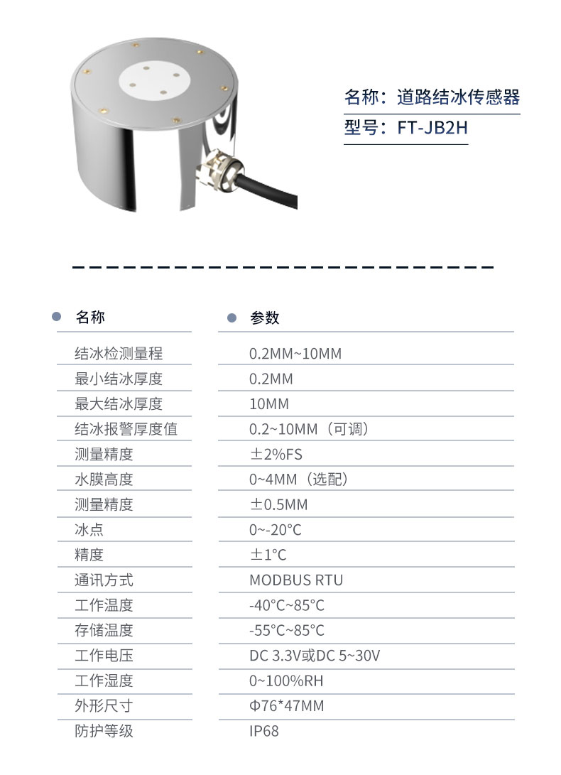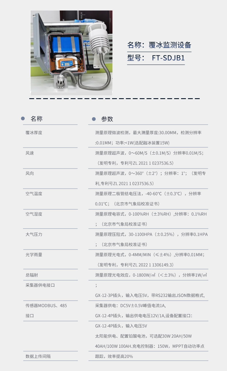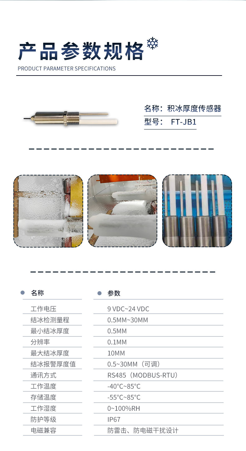 【产品简介】一、结冰传感器简介结冰传感器采用独特的微波检测技术并结合温度分析实现对各种类的风力发电机组的机箱、叶片、电缆、冷却塔、通信天线、户外设备等进行结冰情况的实时监控,给出监测区域的结冰···