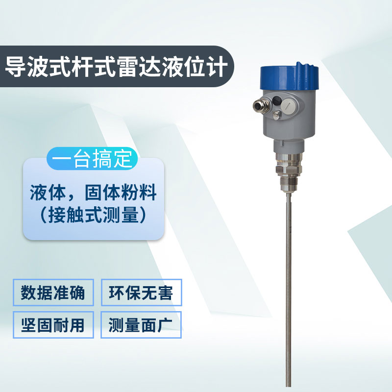 【产品简介】一、接触式雷达液位计产品原理导波雷达发出的高频微波脉冲沿着探测组件(钢缆或钢棒)传播,遇到被测介质,由于介电常数突变,引起反射,一部分脉冲能量被反射回来。发射脉冲与反射脉冲的时间间···