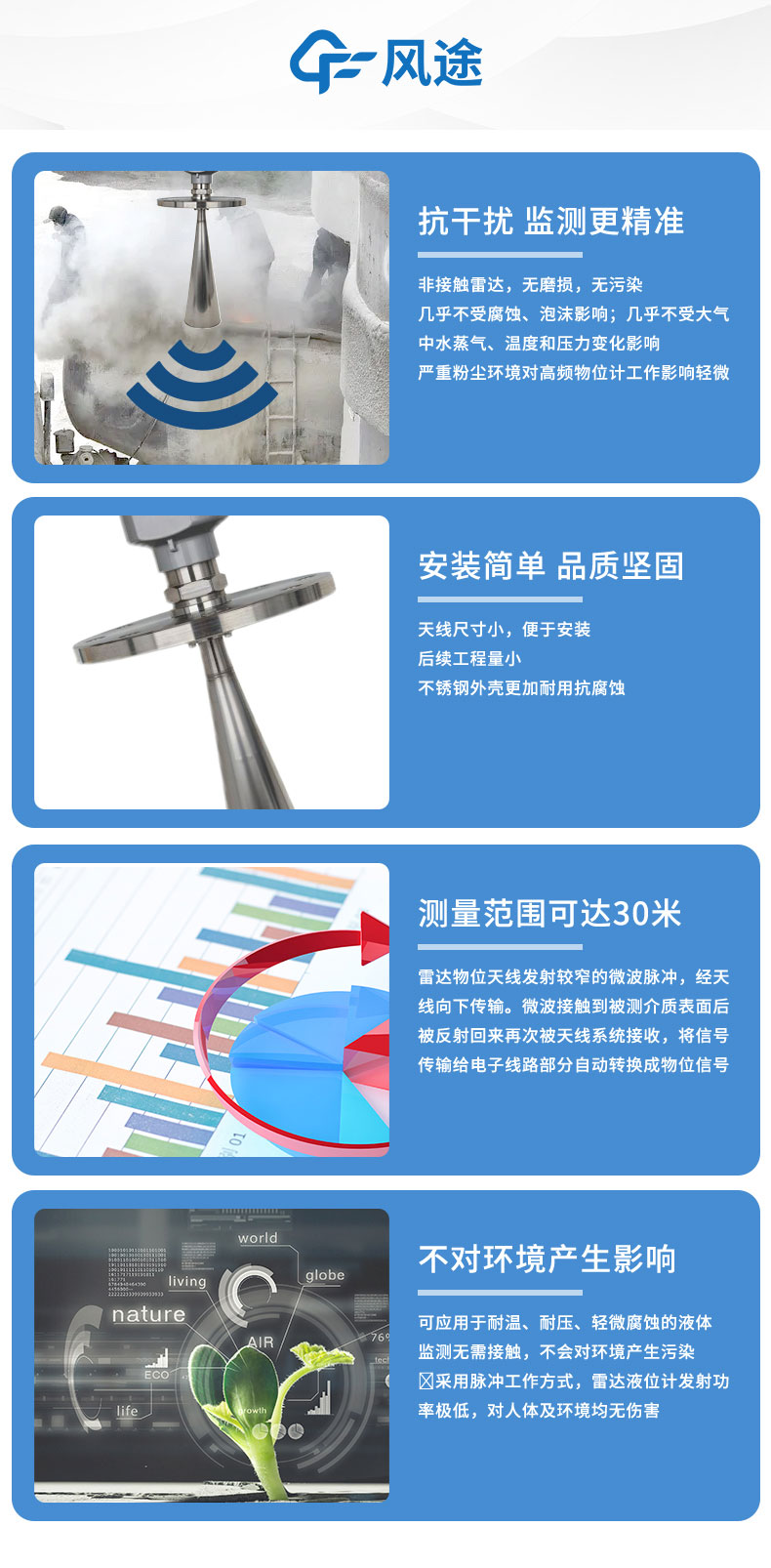 天线尺寸小,便于安装;非接触雷达,无磨损,无污染。