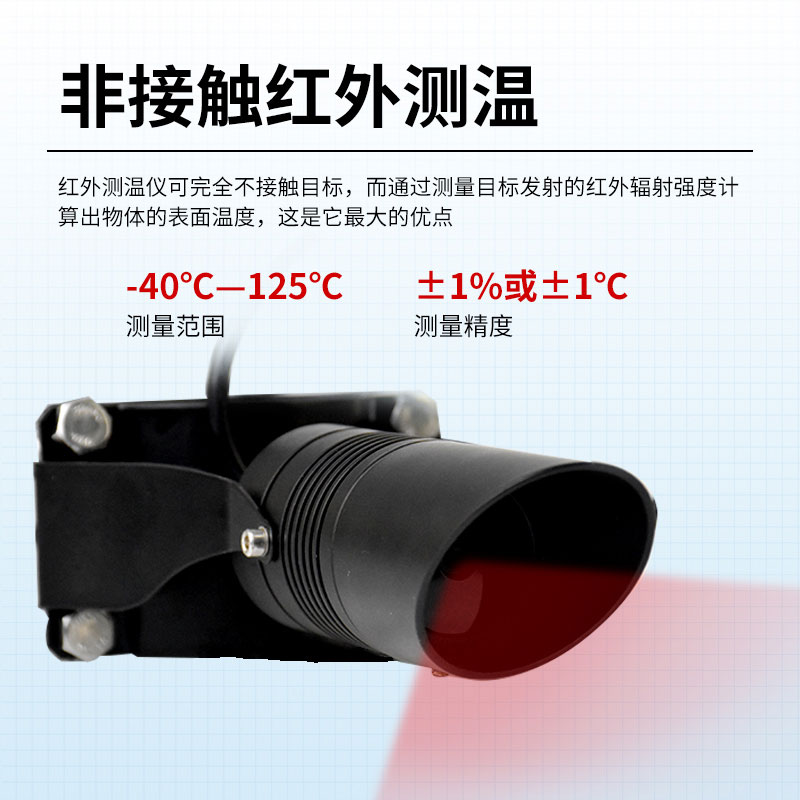 路面温度传感器内部是由一个热电堆和一个热敏电阻构成。所有的物体都在不停地向周围空间发出红外辐射能量,通过对其自身辐射的红外能量的测量,便能准确地测定它的表面温度,这就是非接触红外测温的原理。红外测温仪可完全不接触目标,而通过测量目标发射的红外辐射强度计算出物体的表面温度,这是它最大的优点。