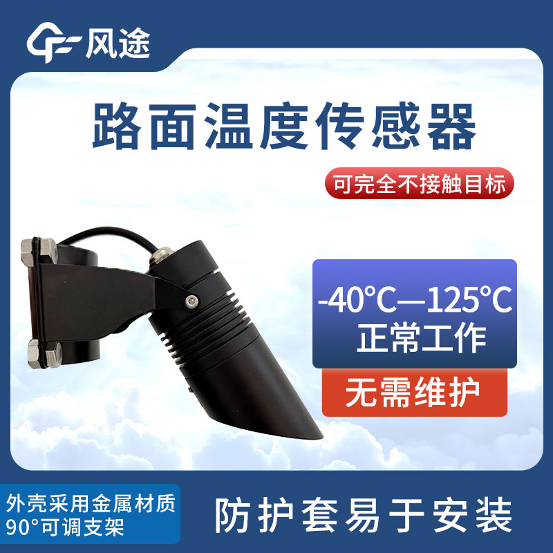 路面温度传感器是一体化集成式路面温度传感器。光学系统与电子线路共同集成在金属壳体内。防护套易于安装,90°可调支架;以满足各种野外条件下安装和进行不间断测量。