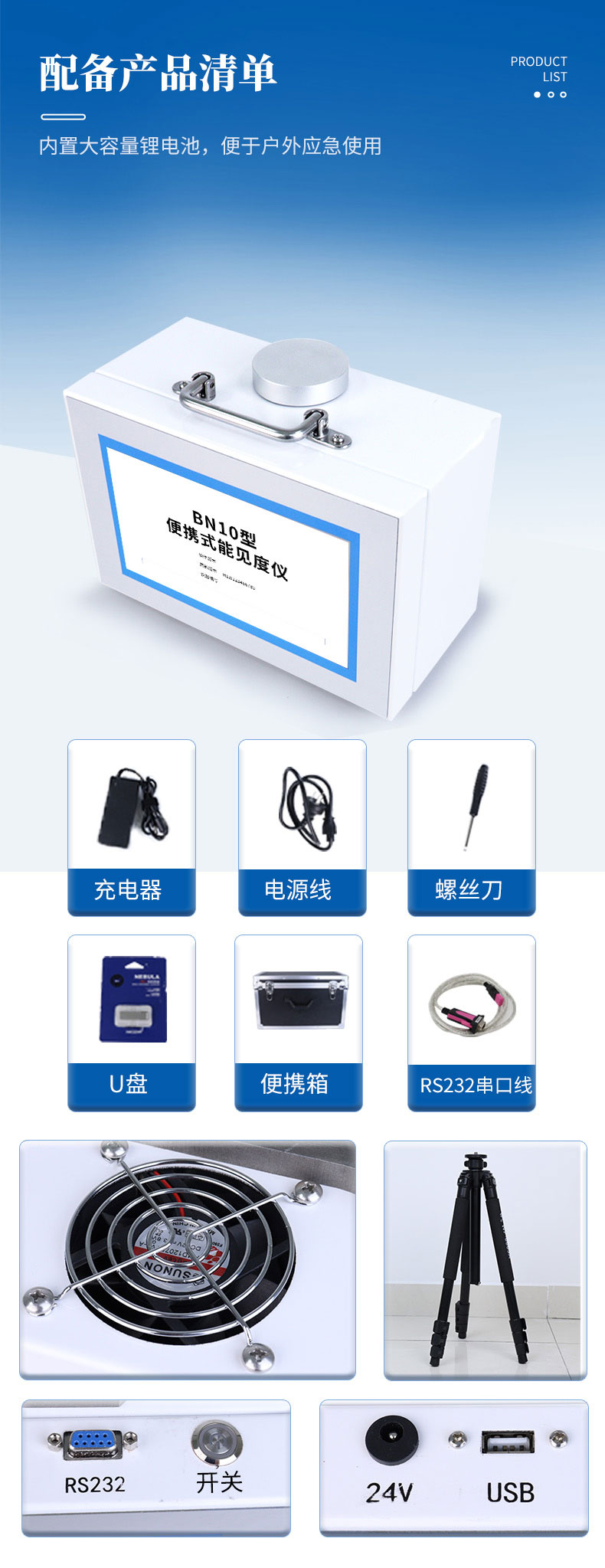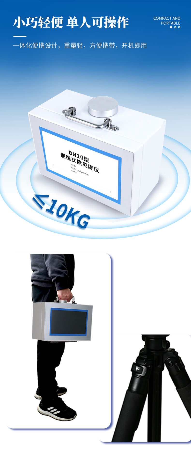 【产品简介】一、20km便携式能见度检测仪产品简介BN2020km便携式能见度检测仪采用前向散射法测量空气总消光系数,计算当前能见度,广泛用于应急、道路交通、气象等场景。二、20km便携式能见···