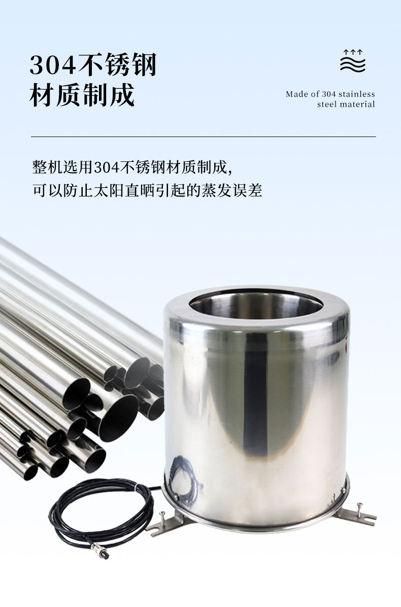 3.压力式测量原理,使用高精度的称重原理测量蒸发皿内液体的重量变化,计算出液面高度,从而测量得到蒸发量,测量更准确,数据更科学;