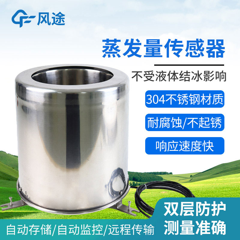 应用压力式测量原理,通过测量蒸发皿内液体重量变化,再计算出页面高度,从而测得蒸发量。能够适应各类环境的水面蒸发测量,不受液体结冰的影响,克服了使用超声波原理测量液面高度时出现的结冰时测量不准、无水时易损坏传感器、测量精度低等弊端。