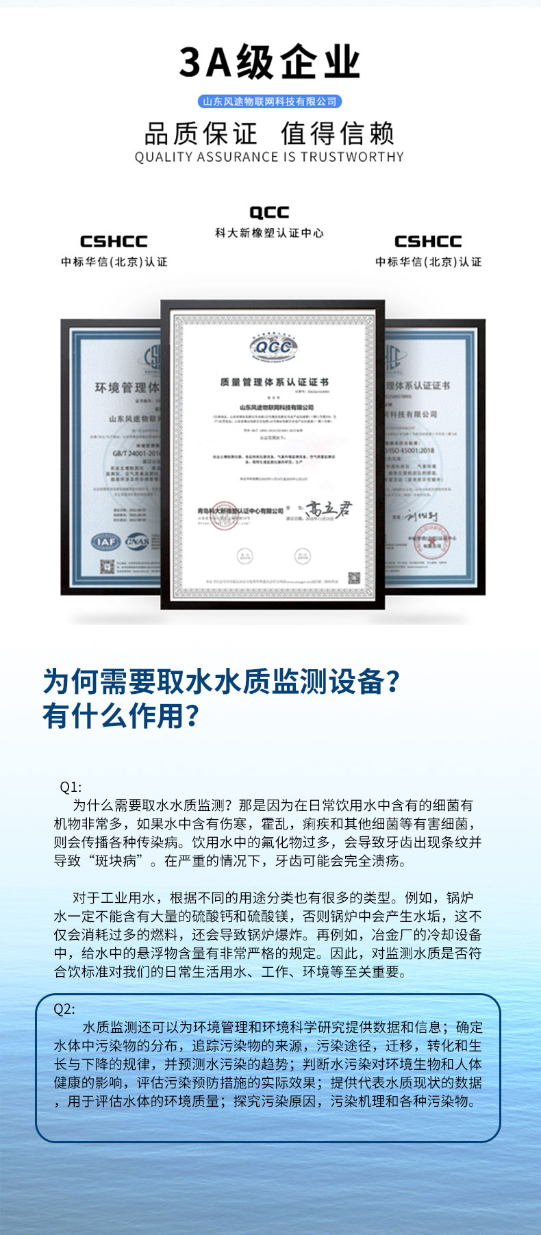 【产品简介】一、水质六参数监测仪产品介绍1.概述QSZ06水质六参数监测仪是基于物联网技术的综合传感器采集、显示、分析系统,供水水质监测微系统,由稳流排气单元、分析测试单元、系统控制单元和远程···