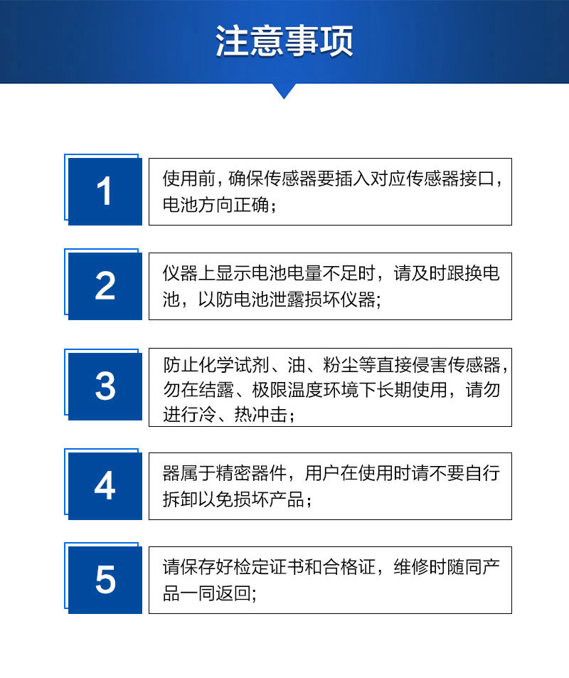 5.防止化学试剂、油、粉尘等直接侵害传感器,勿在结露、极限温度环境下长期使用,请勿进行冷、热冲击;