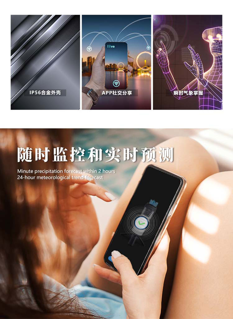 传统气象预报,大多数据较为宽泛、模糊、滞后,智能气象仪能随时精准监测局地天气,实时预测局地气象变化,揭开精准气象的神秘面纱。