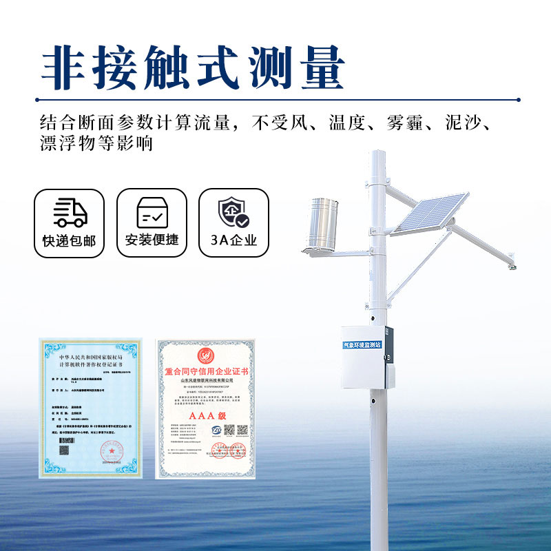 1、非接触式测量,结合断面参数计算流量,不受风、温度、雾霾、泥沙、漂浮物等影响。