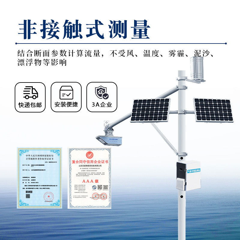 1、非接触式测量,结合断面参数计算流量,不受风、温度、雾霾、泥沙、漂浮物等影响。