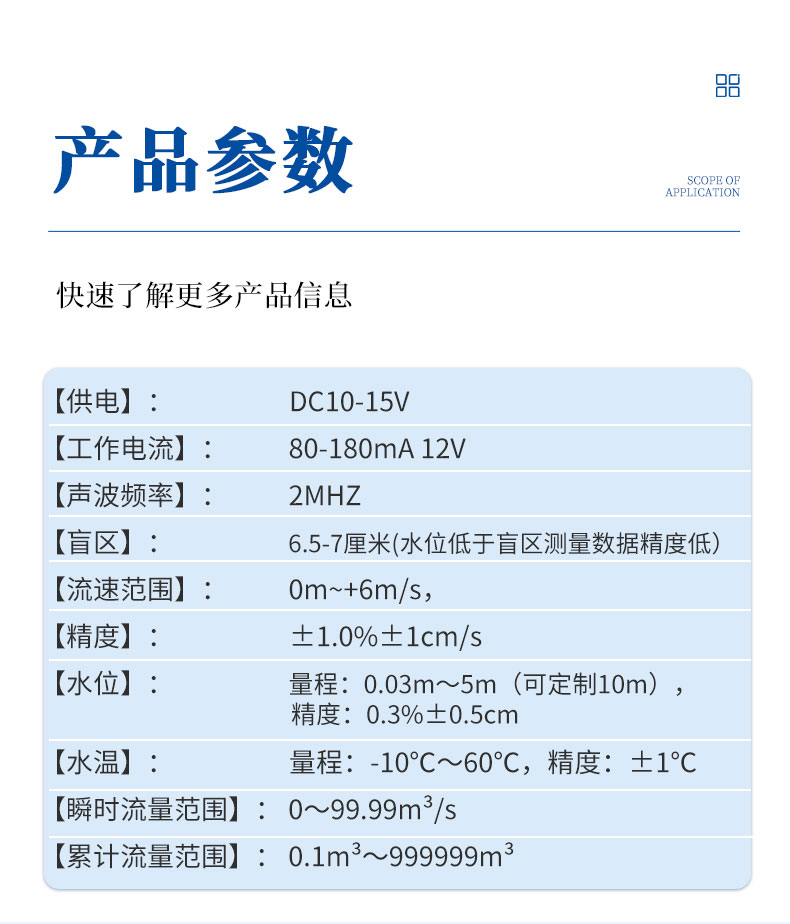 7.水位:量程:0.03m~5m(可定制10m),精度:0.3%±0.5cm