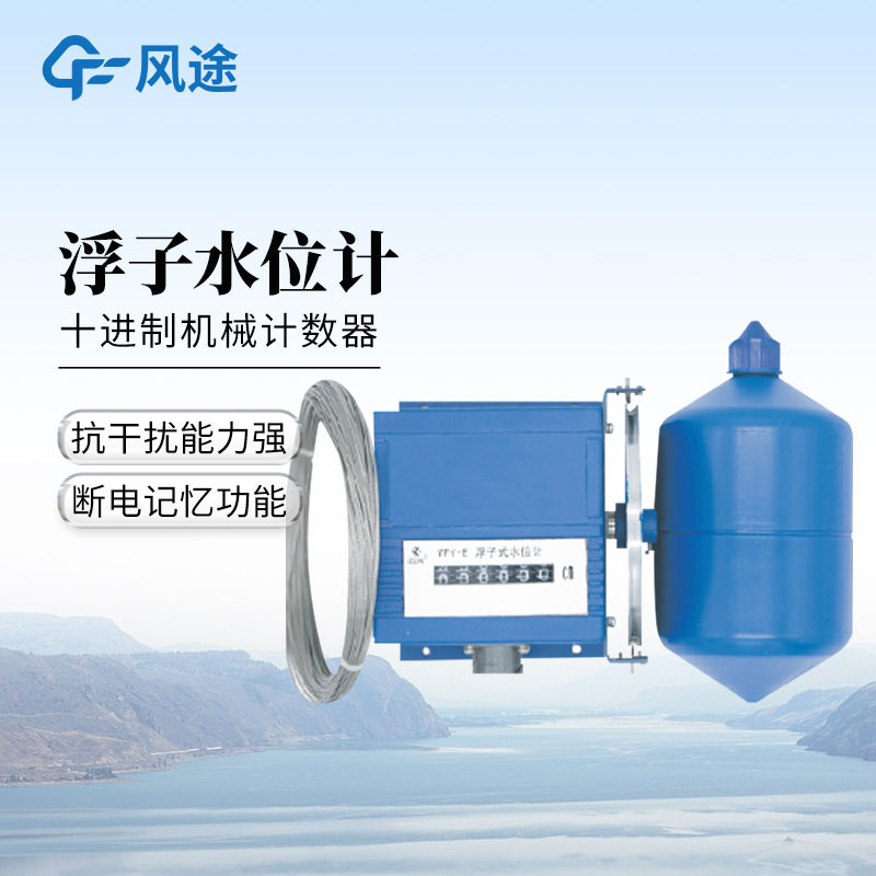 工作原理为:仪器以浮子感测水位变化,工作状态下,浮子、重锤与钢丝绳连接牢固,钢丝绳悬挂在水位轮的“V”形槽中。平衡锤起拉紧钢丝绳和平衡作用,调整浮子的配重可以使浮子工作于正常吃水线上。在水位不变的情况下,浮子与平衡锤两边的力是平衡的。当水位上升时,浮子产生向上浮力,使平衡锤拉动钢丝绳带动水位轮作顺时针方向旋转,水位传感器的显示读数增加;水位下降时,则浮子下沉,拉动钢丝绳带动水位轮逆时针方向旋转,水位传感器的显示器读数减小。