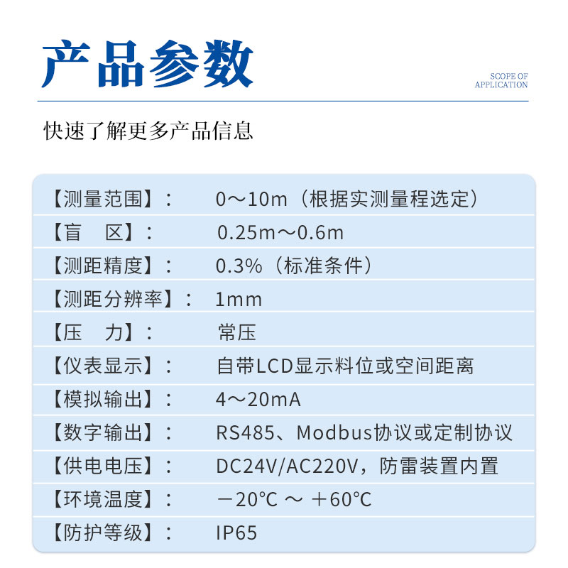 本仪表可通过4~20mA或RS485(Modbus协议或其他定制协议)连接到显示表或各种DCS系统中,为工业的自动化运行,提供实时的料位数据。
