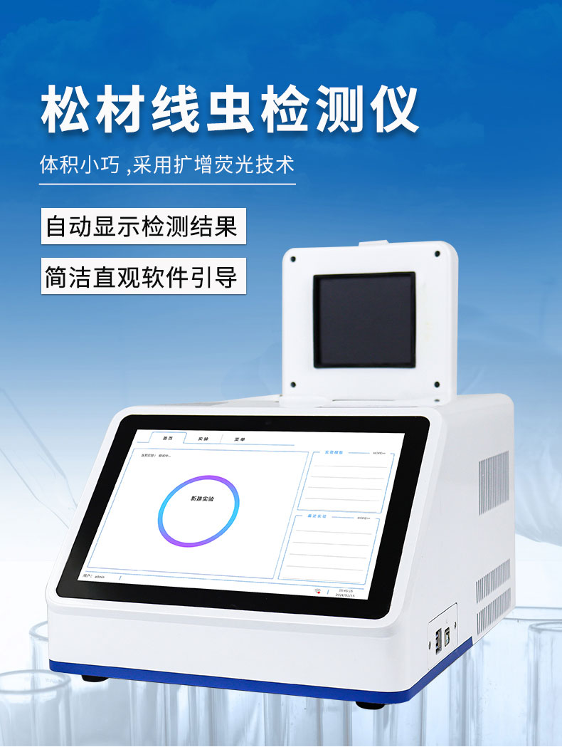 【产品简介】一、松材线虫病检测仪仪器用途松材线虫病检测仪主要包括松材线虫的分离、DNA提取、荧光定量PCR检测检测等过程。可快速完成松材线虫的检测工作,自动显示检测结果并打印检测报告,无需人工···